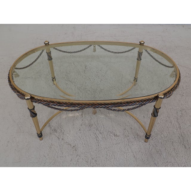 Neoclassical Oval Brass Coffee Cocktail Table W Beveled Glass Top