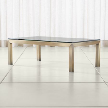 Parsons Clear Glass Top Brass Base 48x28 Small Rectangular Coffee