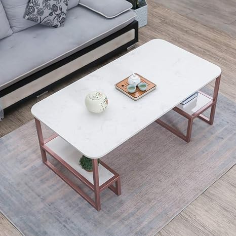 Casual Coffee Table Side Table White Wooden Table Top Metal