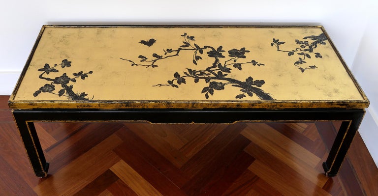 Japanese Gold Leaf Cherry Blossom Coffee Table With Inset Glass