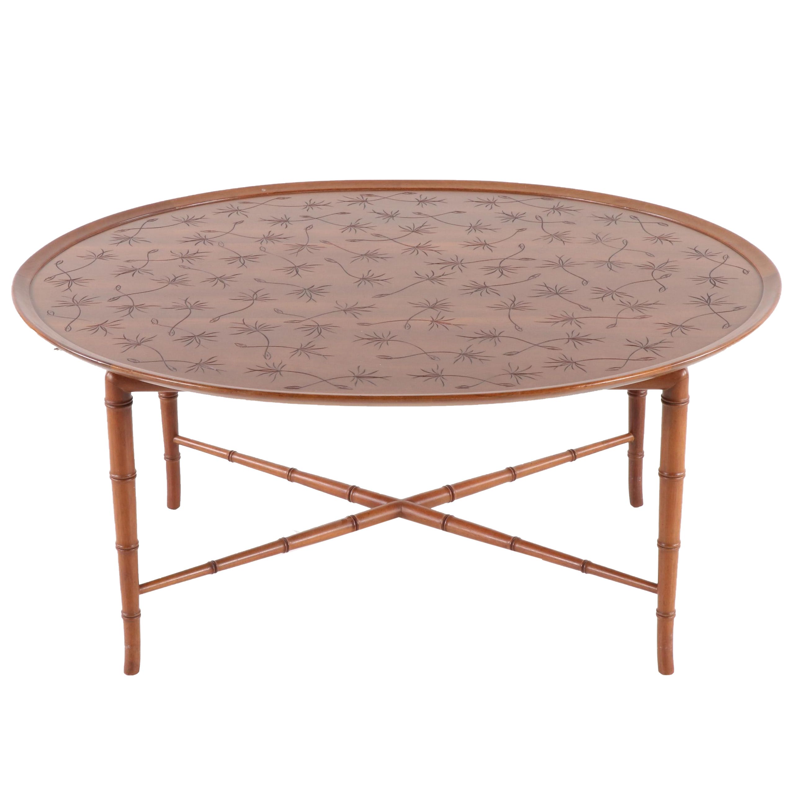Mid Century Hollywood Regency Painted Cherry Oval Coffee Table
