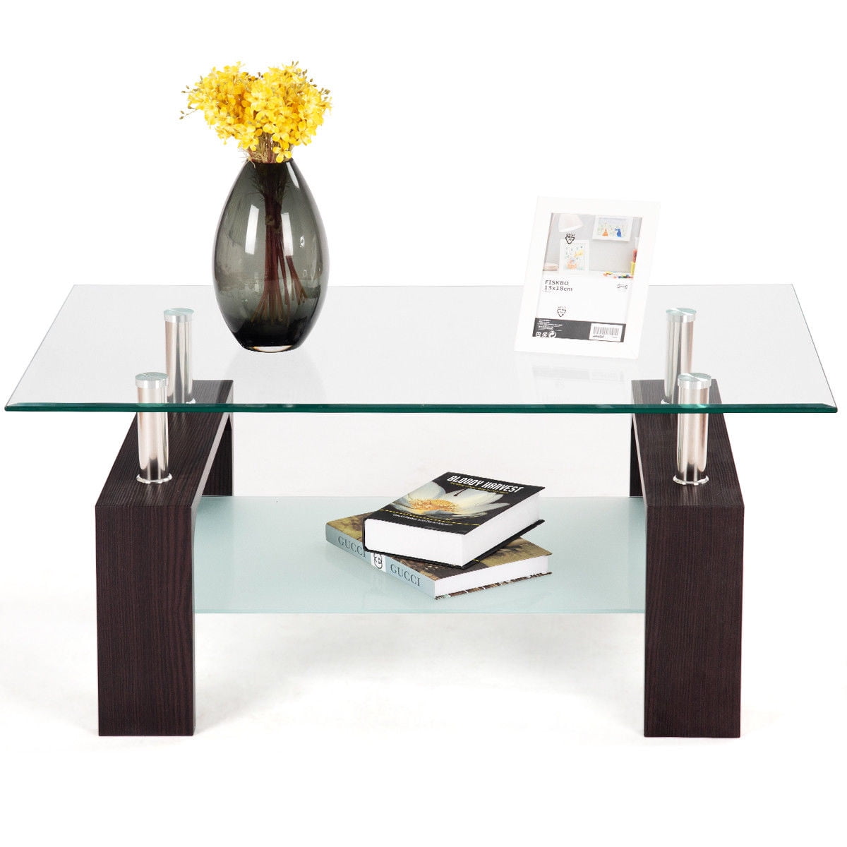 Glass Coffee Table Modern Living Room With Lower Shelf Storage