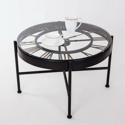 Black Metal Copper Clock Face Glass Top Coffee Table Ebay