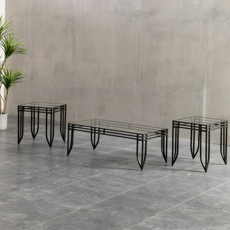 Roundhill Matrix 3 In 1 Accent Table Set With Black Metal Frame 1