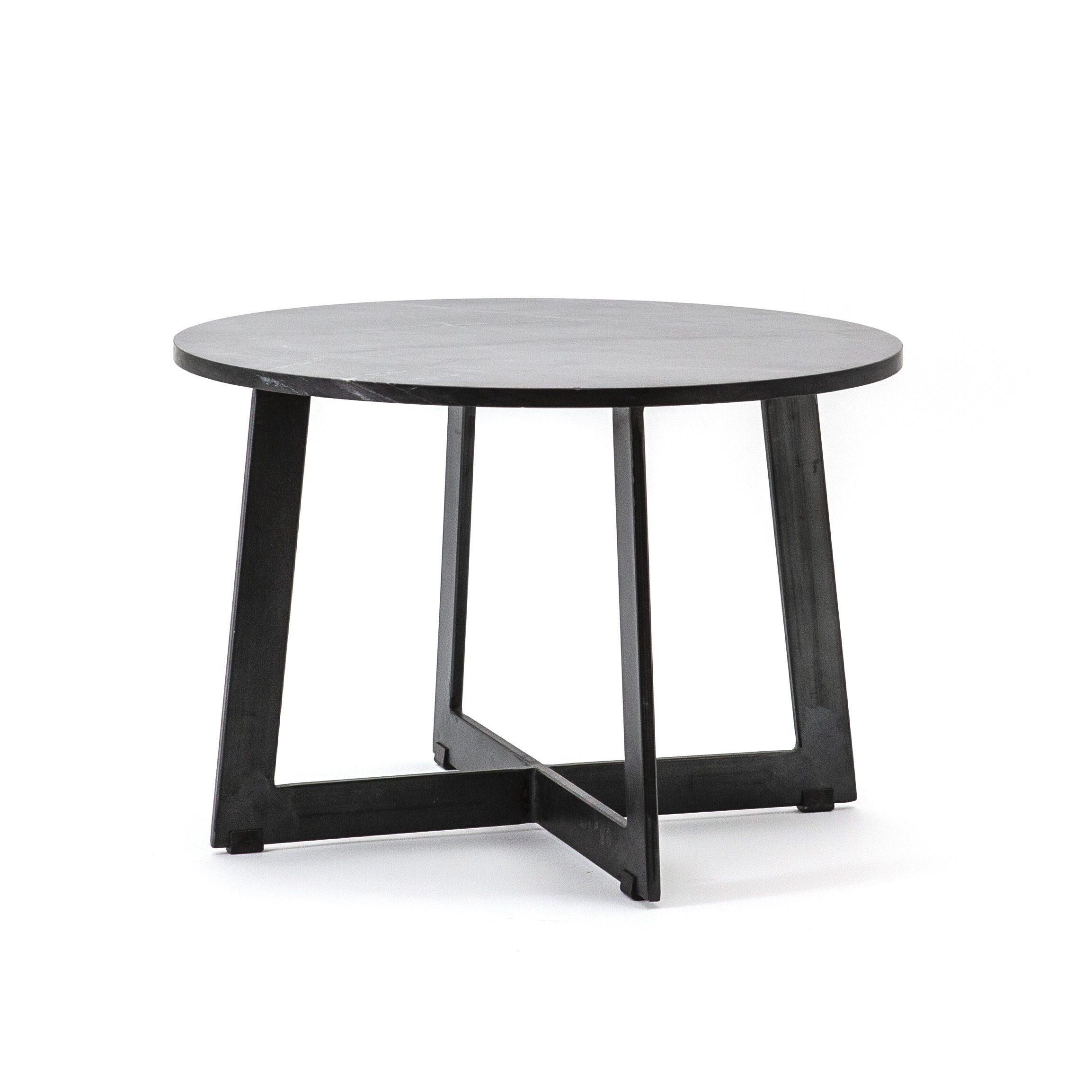 Olivery Round Accent Coffee Table Metal Frame Cage Slate Black