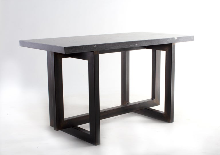 Geometric Form Patinaed Steel Base With Archival Blue Stone Top