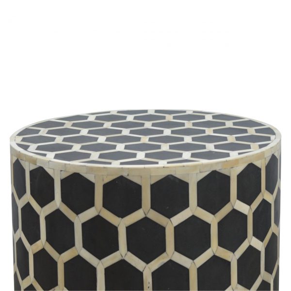 Maaya Bone Inlay Round Drum Coffee Table Black Honeycomb Drum