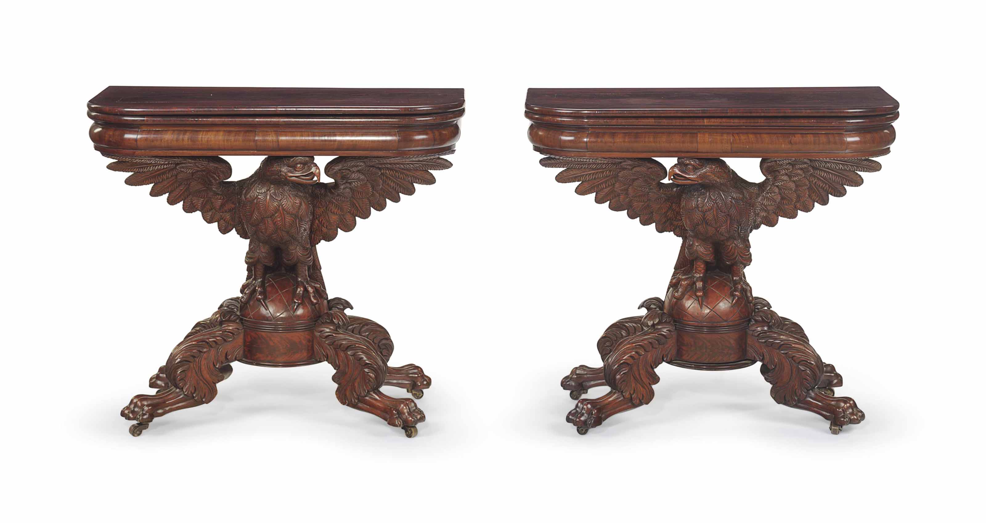 A Pair Of Classical Carved Mahogany Eagle Base Card Tables New