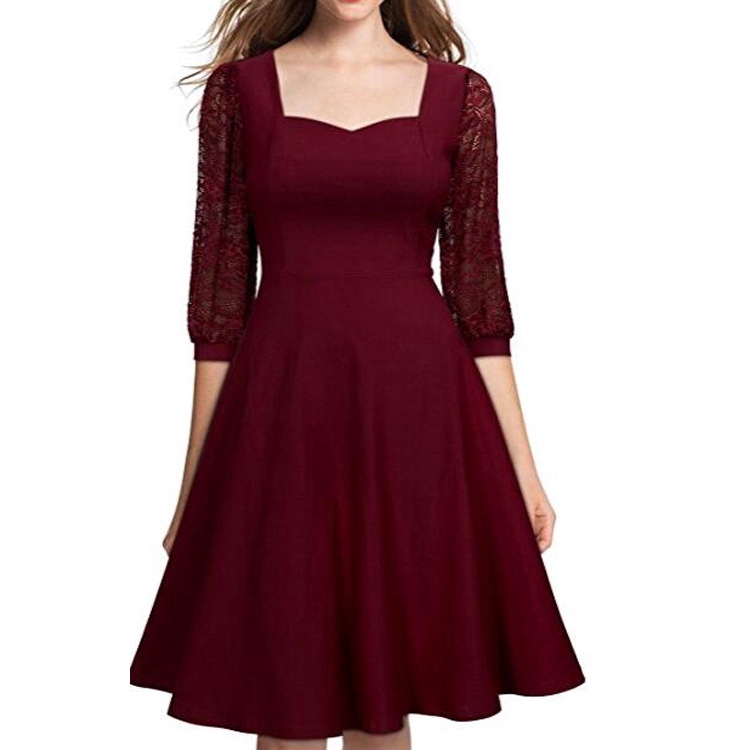 New Women Party Dress Casual Elegant Ladies Lace Embroidery