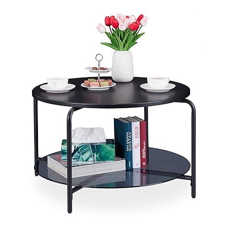 Relaxdays Round Coffee Table With 2 Tabletops Living Room For