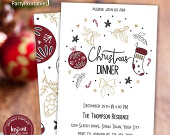 Christmas Party Invitation Christmas Dinner Invitation Etsy