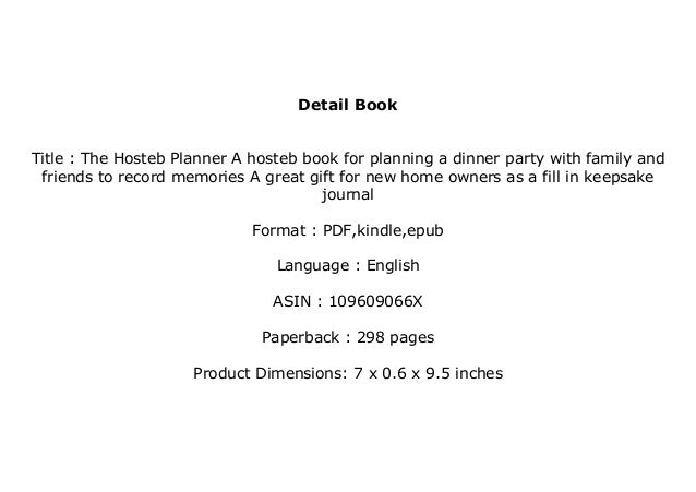 Read Library The Hosteb Planner A Hosteb Book For Planning A Dinn