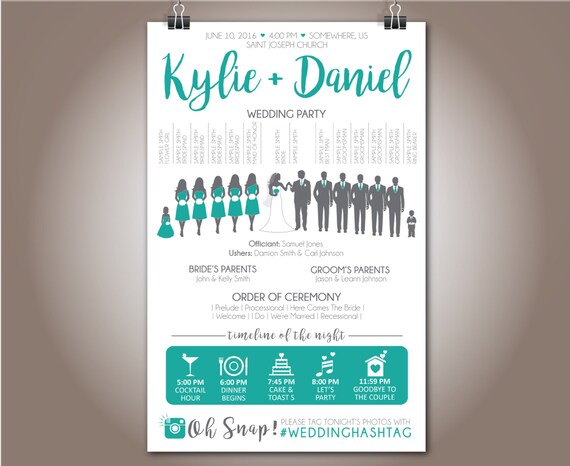 Silhouette Wedding Party Program Kylie Daniel Etsy