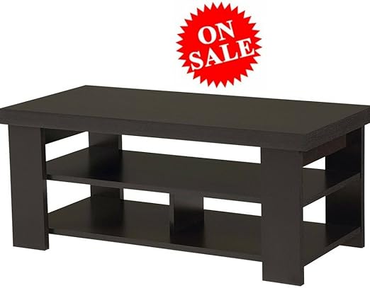 Amazon Com Open Wooden Coffee Table With Selves Storage Dark
