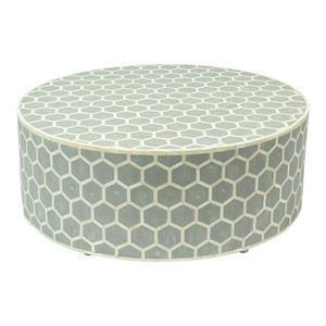 Made To Order Bone Inlay Round Drum Coffee Table Black Honeycomb