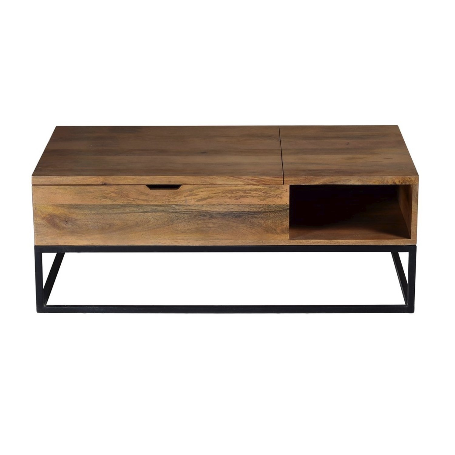 Solid Wood Flip Top Coffee Table With Industrial Black Base Suri