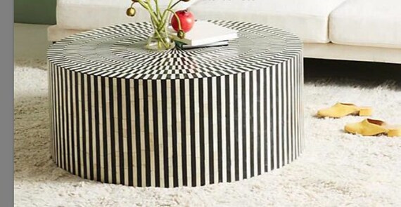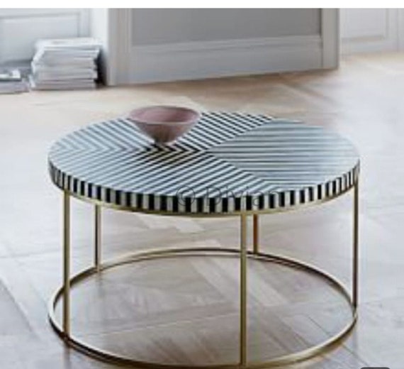 Round Monochrome Bone Inlay Coffee Tables Etsy