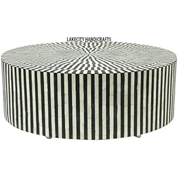 Amazon Com Bone Inlay Coffee Table Round With Black Stripe
