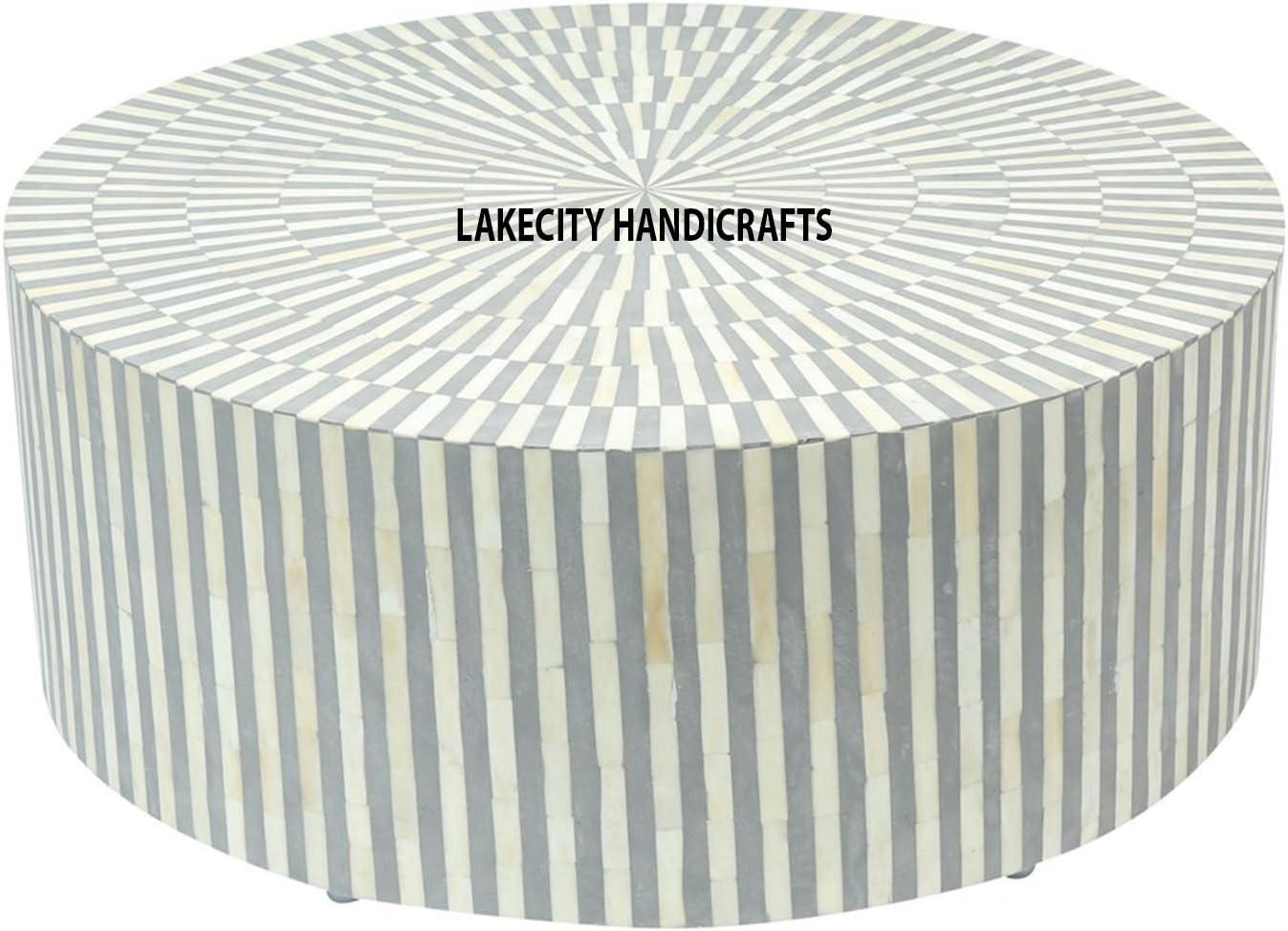 Bone Inlay Coffee Table Round White Stripe Bone Inlay Home