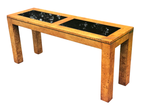 Paul Evans Signed Cityscape Burled Wood Console Table With Glass