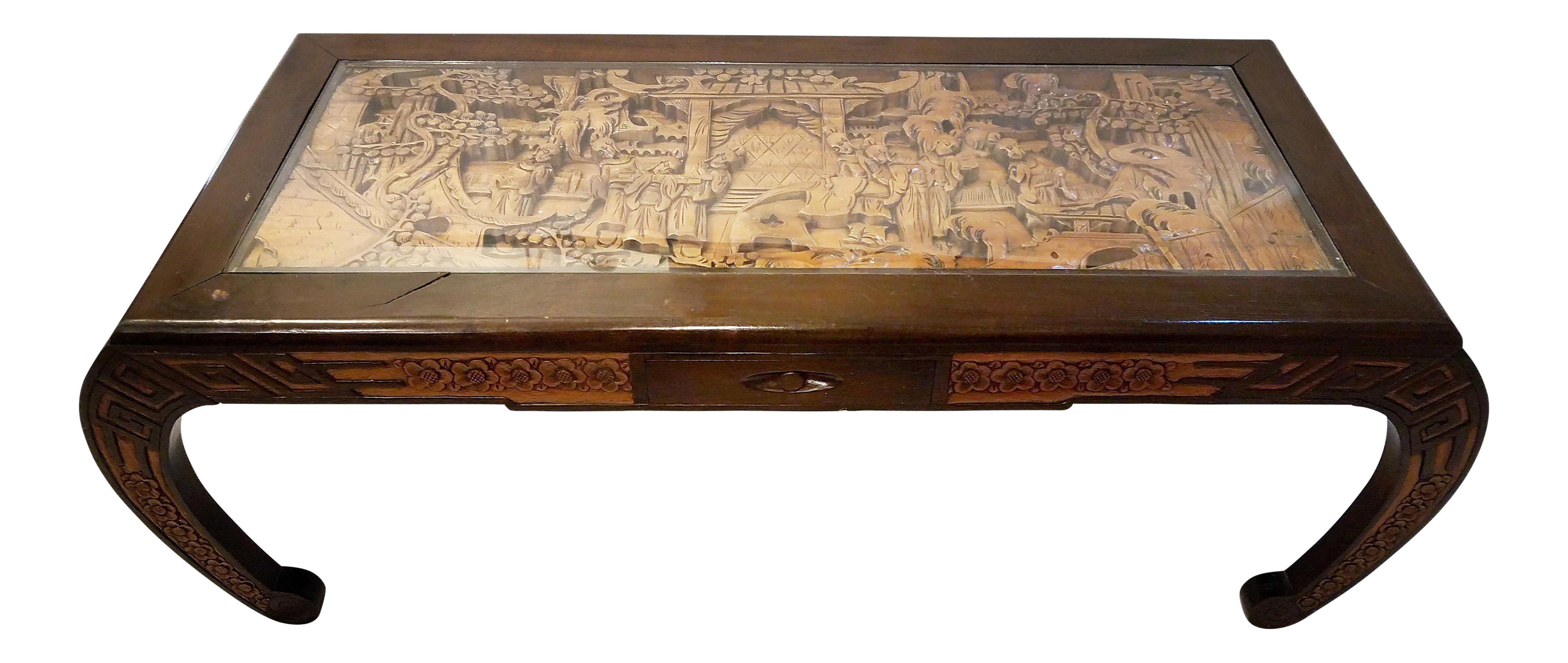Oriental Carved Glass Top Coffee Table My Antique Furniture