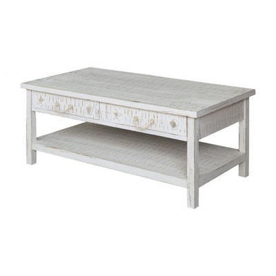 New Coastal Cottage Antique White Wood Sea Shell Carved Coffee
