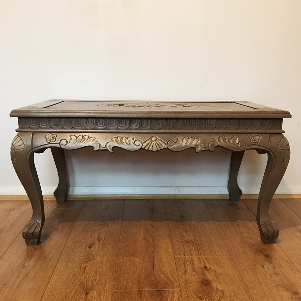Solid Oak Dark Wood Effect Carved Coffee Table Etsy