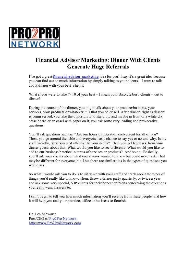 Financial Advisor Marketing Dinner With Clients Generate Huge Referr