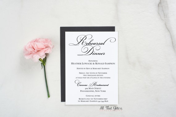 Black And White Rehearsal Dinner Party Invitations Fancy Etsy