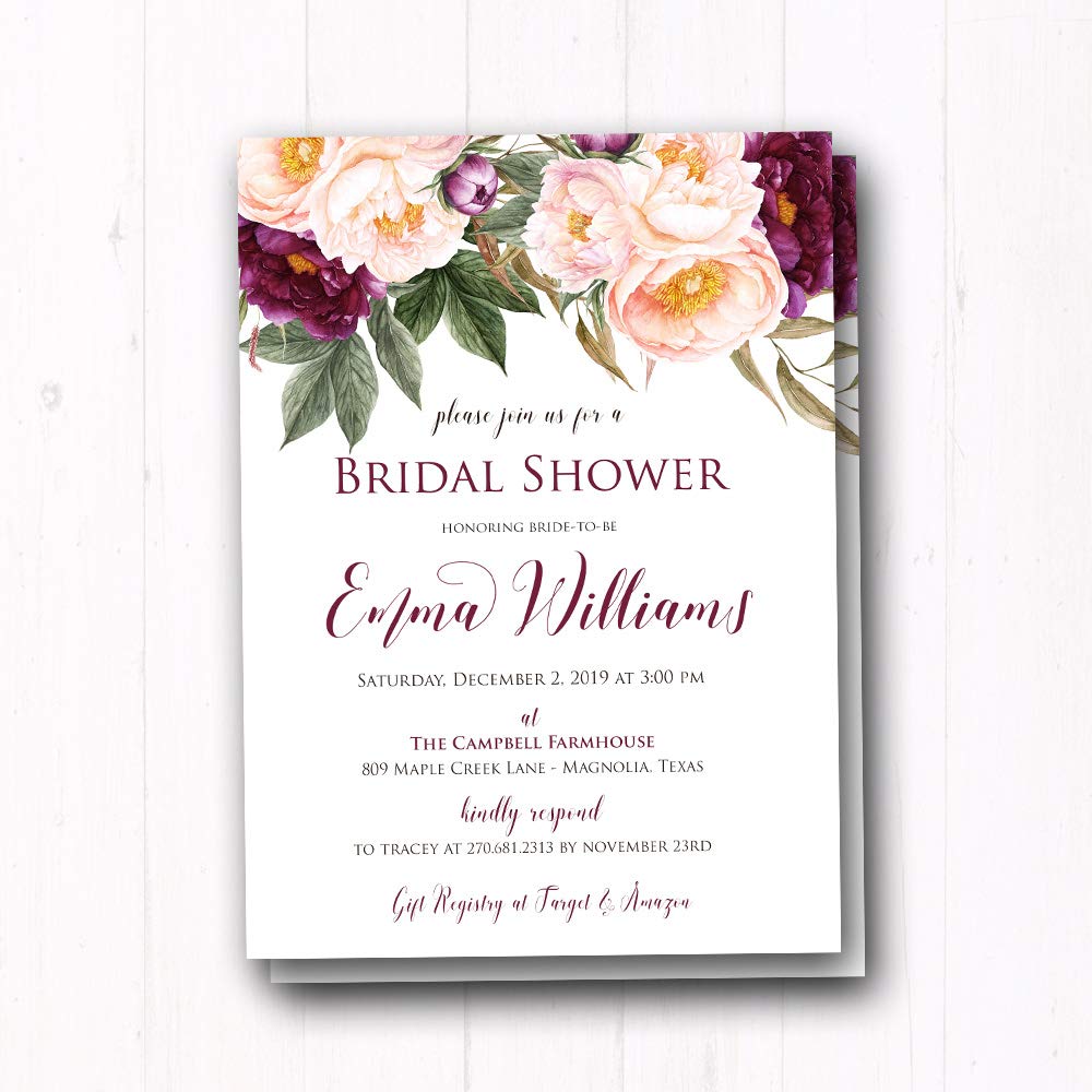 Amazon Com Blush And Purple Floral Bridal Shower Invitations