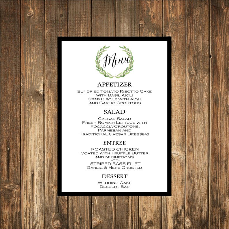 Wedding Menus 5x7 Shower Menus Dinner Party Menus Custom Etsy