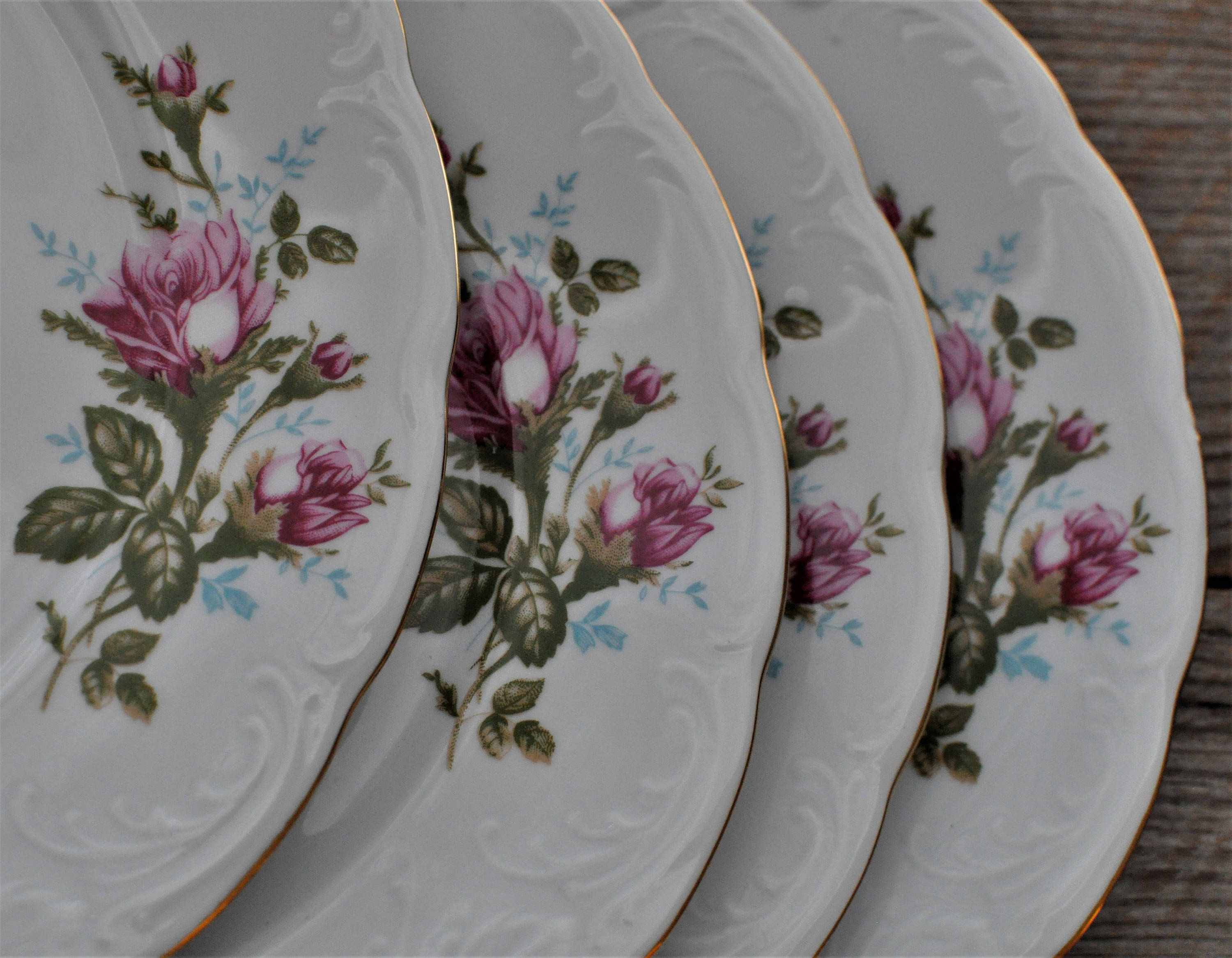 Tea Party China Plates Mismatched Dinner Pink Roses Etsy