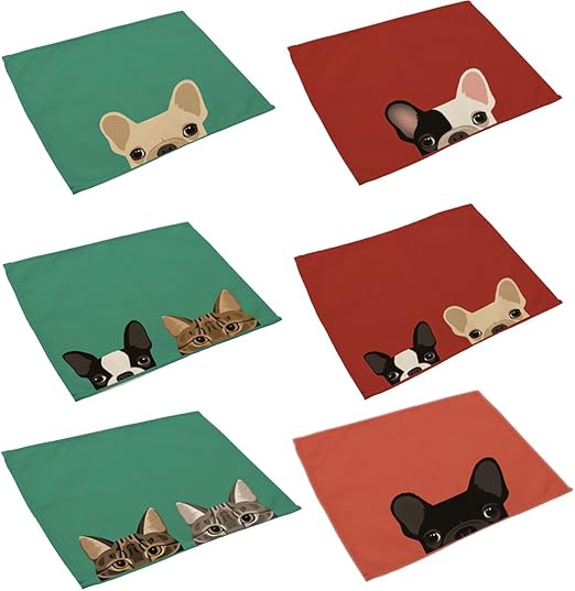 Amazon Com Cotton Linen Placemats Yifan Set Of 6 Cute Dog Cat