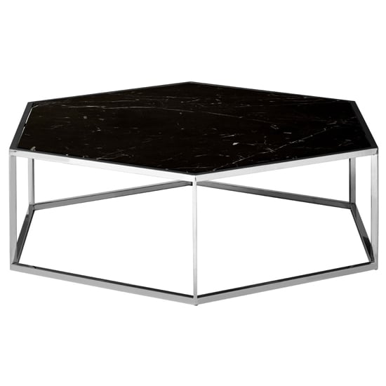 Piermount Hexagon Marble Coffee Table With Silver Frame