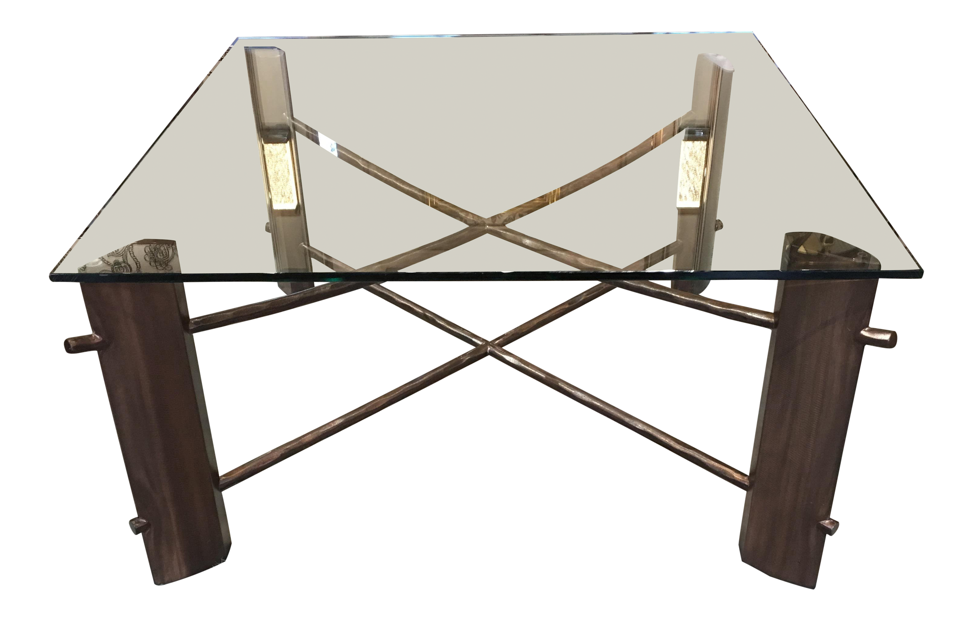 French Industrial Bronze Metal Glass Top Square Coffee Table 32