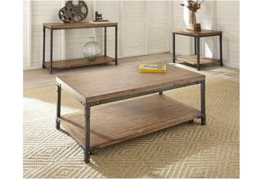 Flexsteel Living Room Rectangular Cocktail Table With Casters