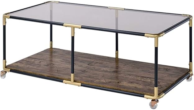 Industrial Wood And Metal Coffee Table With Casters Coffee Table
