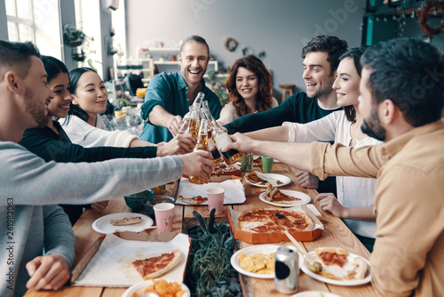 Cheers To Friends Group Of Young People In Casual Wear Toasting