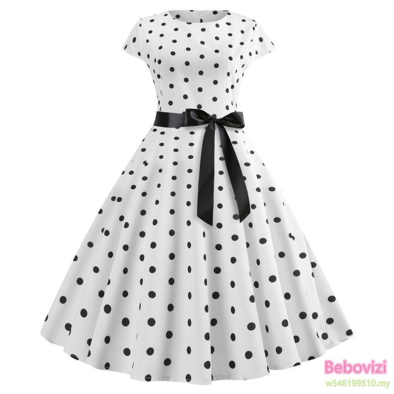 White Wave Point Hepburn A Line Dresses Dinner Party Dresses Midi