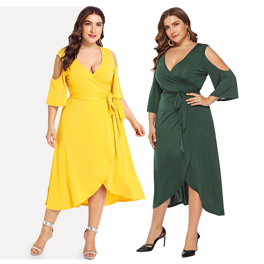 Women Plus Size V Neck Casual Dinner Party Clothes Dress Shopee