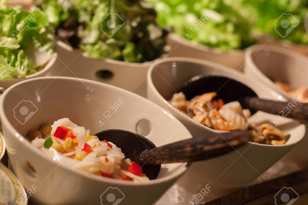 Salad Vegetables In Bowl On Wedding Dinner Party Stock Photo