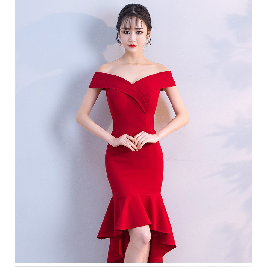 New Off Shoulder Women Wedding Dress Slim Lady Dinner Party