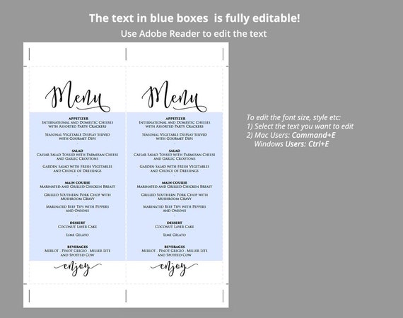 Wedding Menu Printable Template Dinner Party Printable Etsy
