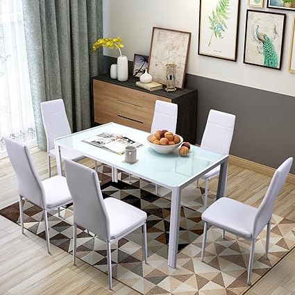 Merax 7 Piece Dining Set Glass Top Metal Table 6 Person Table And