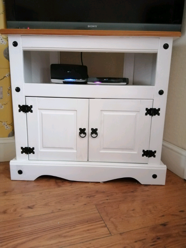 White And Pine Corner Tv Unit And Large Blanket Box Coffee Table In