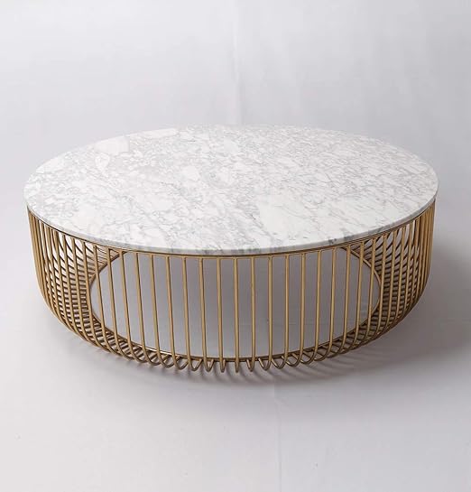 Amazon Com Mie Coffee Table Carrara Marble Top Gold Base