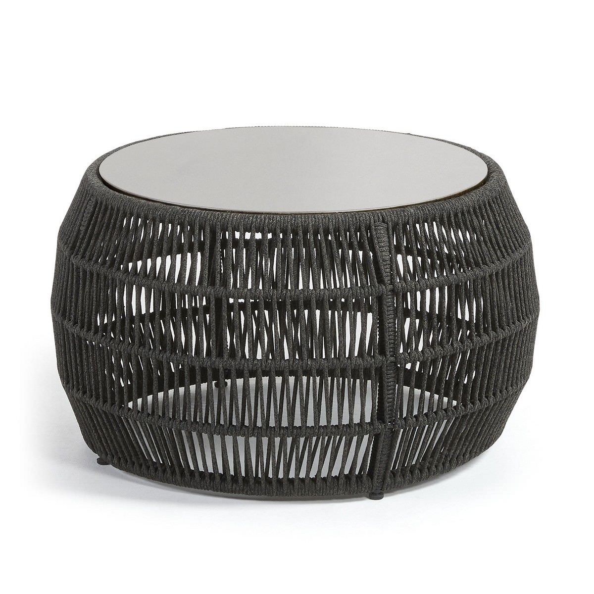 Karvalis Woven Rope Round Coffee Table With Poly Cement Top