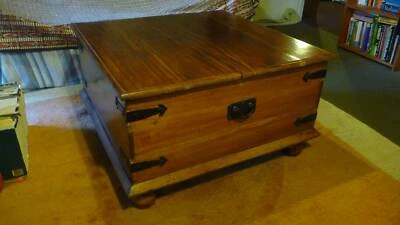 Vintage Large Wooden Coffee Table Treasure Chest Brown Coffee