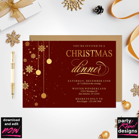 Christmas Dinner Party Invitation Christmas Party Invitation Etsy