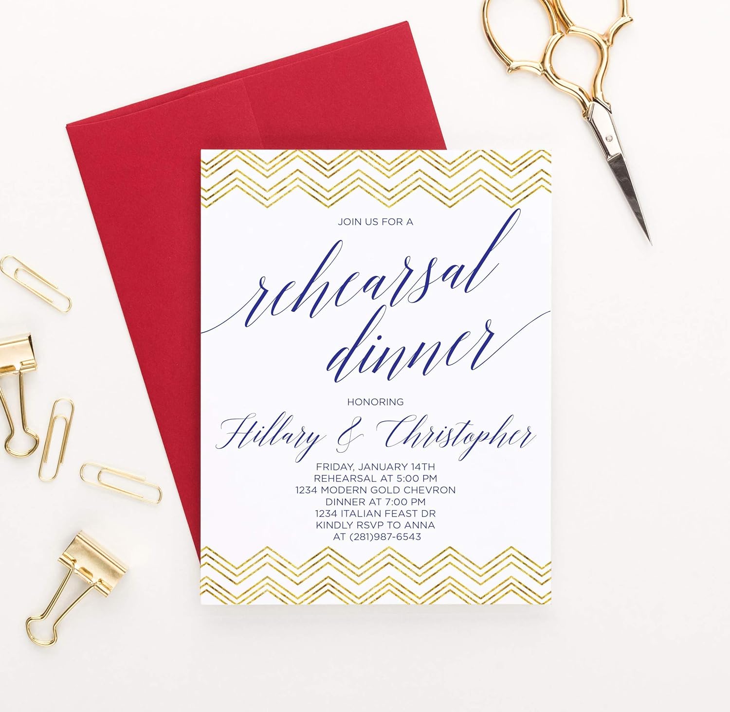 Amazon Com Modern Rehearsal Dinner Invitation Gold Chevron
